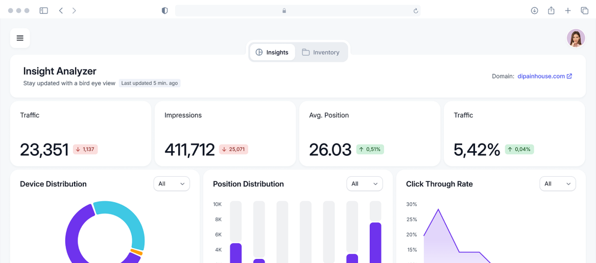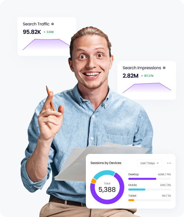 Use real data from Google Search Console to fine-tune your SEO game. Optimize titles, descriptions, schema, and alt text effortlessly for better visibility and higher clicks.