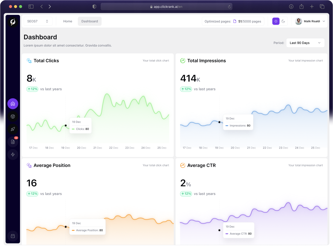 Automatically generate and update titles and meta descriptions using advanced JavaScript that optimizes your pages for higher CTR and position.